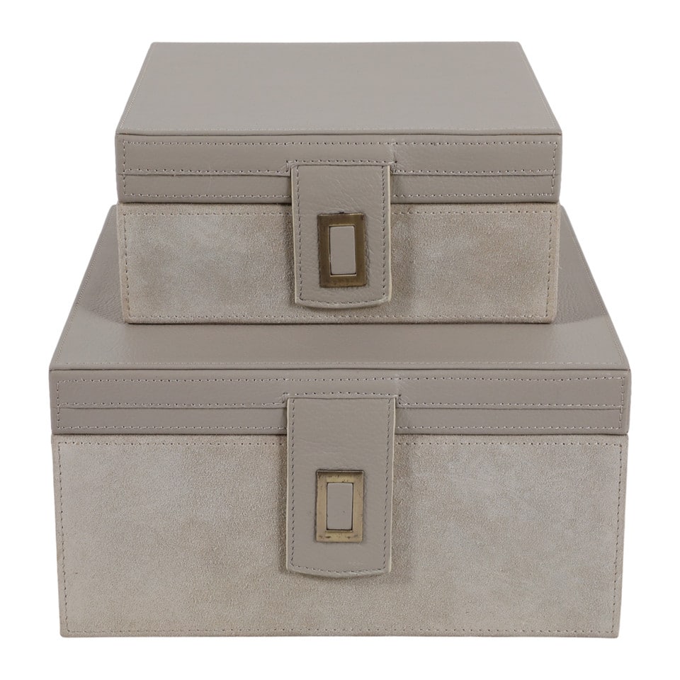 Caja Decorativa Hamden en Cuero Taupe Pequeña
