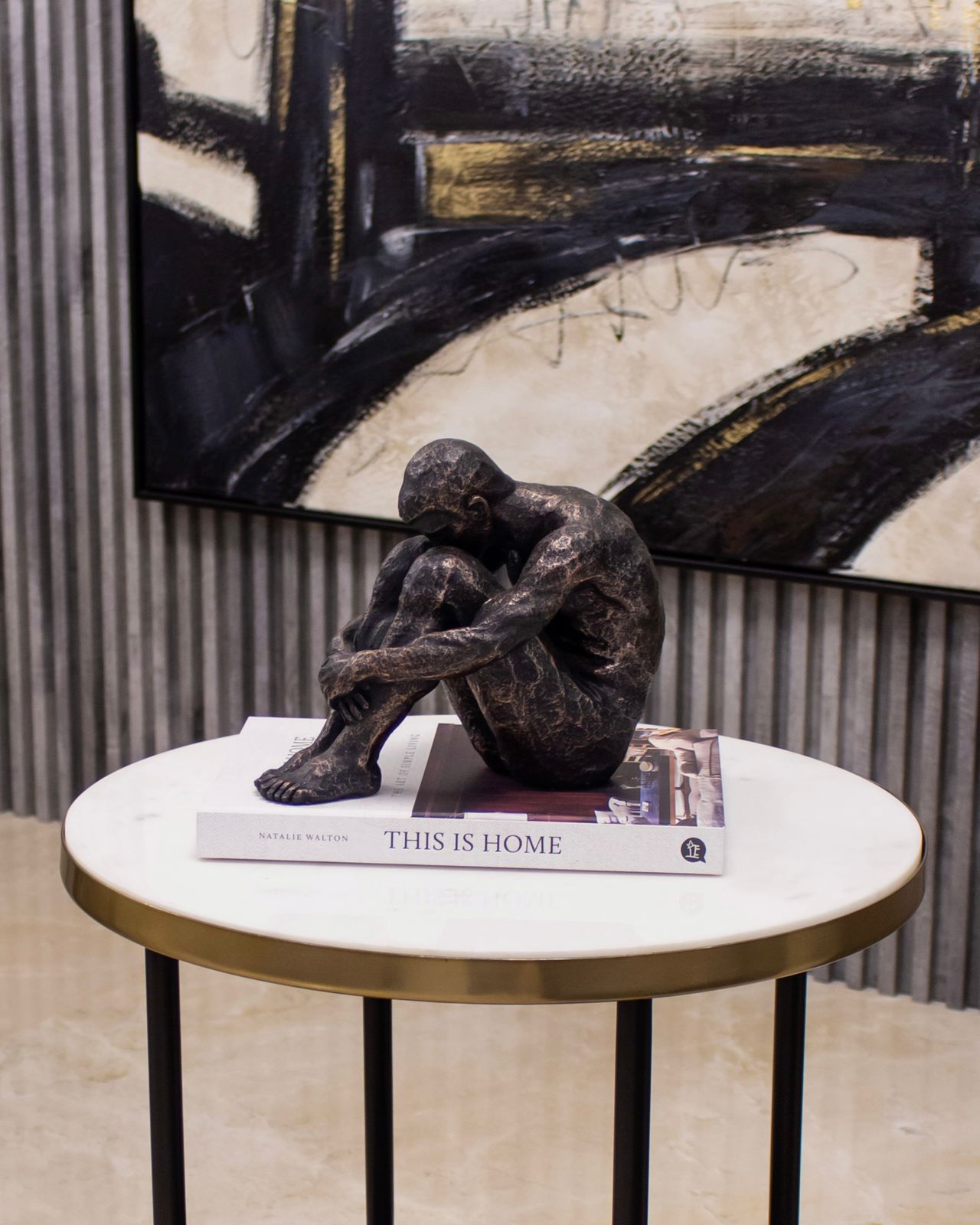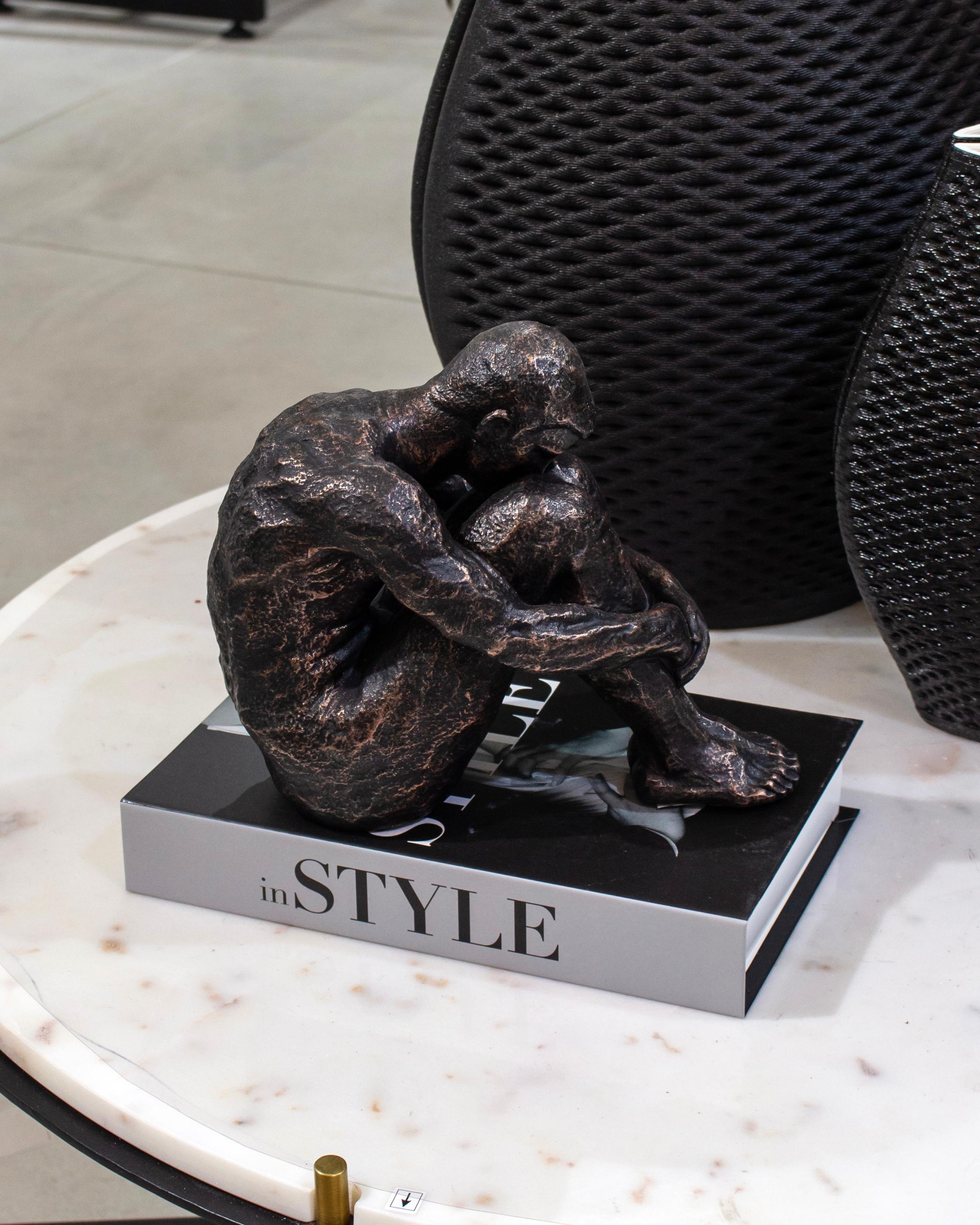 Imponente escultura de hombre sentado, esta elaborada en resina.
