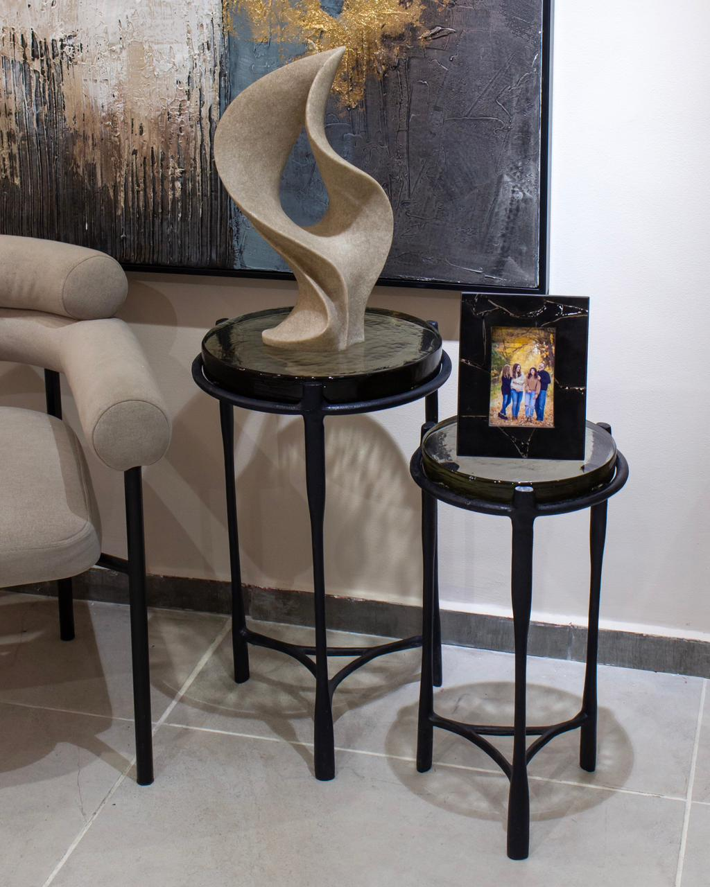 Mesa auxiliar Adonia combina elegancia moderna con sostenibilidad gracias a su fabricación en vidrio reciclado con acabado gunmetal, un tono gris metálico sofisticado. Su diseño limpio y contemporáneo permite usarlas juntas para crear un efecto escalonado o por separado para aportar funcionalidad en distintos rincones del hogar. Son piezas versátiles, llamativas y perfectas para elevar cualquier espacio con un toque ecológico y estilizado. Dimensiones: 58 cm altura, 33cm de diámetro.