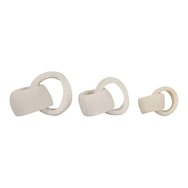 Set de tres figuras decorativas en forma de nudo con diseño moderno y acabado tipo cuarzo. Estas piezas escultóricas son ideales para decorar mesas de centro, estanterías o consolas, aportando textura y un estilo contemporáneo que realza cualquier ambiente.